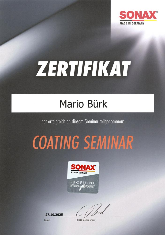 Maximaler Schutz für Ihren Lack! Unsere hochwertige Keramikversiegelung sorgt für langanhaltenden Glanz, UV-Schutz und eine wasser- sowie schmutzabweisende Oberfläche – für bis zu mehrere Jahre.